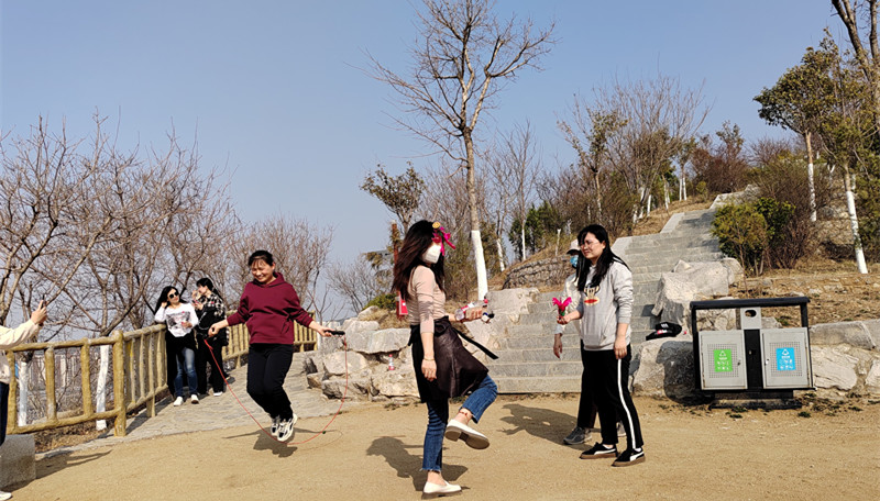 3月7日下午,yl34511线路中心与基建处女职工齐聚马武寨山下,开展登山活动,以绿色、健康的活动方式来庆祝自己的节日。副处长张富来向参加活动的女职工们送上节日祝福,并同大家一起登山。山风习习,呼吸着山间新鲜的空气,平日紧张忙碌的心情得到放松,尽管山路崎岖不平,但没有一位职工轻言放弃,大家相互打气加油,一路登顶。在山顶的平地上,女职工们组织了踢毽子和跳绳活动,尽享运动带来的欢乐。