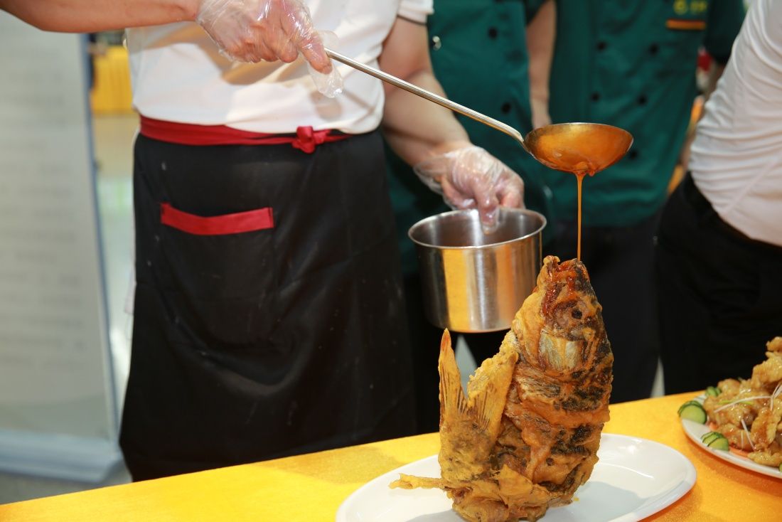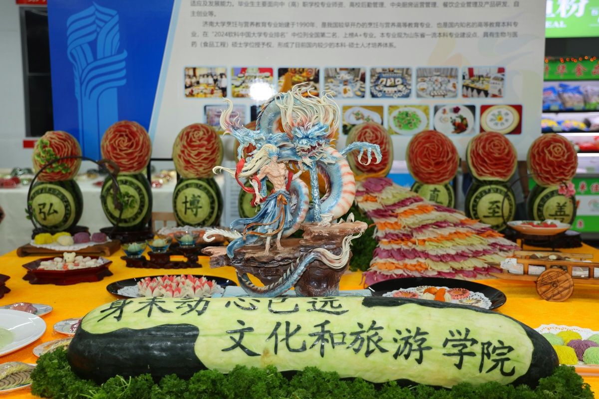 参赛的各食堂员工在比赛中展现拿手绝技,切磋厨艺技能。自选菜环节,大厨们各展奇招,色香味俱全的菜肴像一件件精美的艺术品,让人“烹”然心动。经过激烈角逐,第三食堂李吉润、第二食堂初荣宁等八人获得个人组特金奖,授予“济大名厨”称号;yl34511线路中心文化和旅游学院烹饪与营养教育专业学生的展台“孔雀迎宾”、第二食堂和第九食堂一二楼共同报送的展台“学齐鲁文化、品儒家美食”获得团体特金奖;北京千喜鹤科技服务有限公司等19家公司获得最佳组织奖。