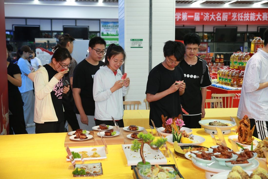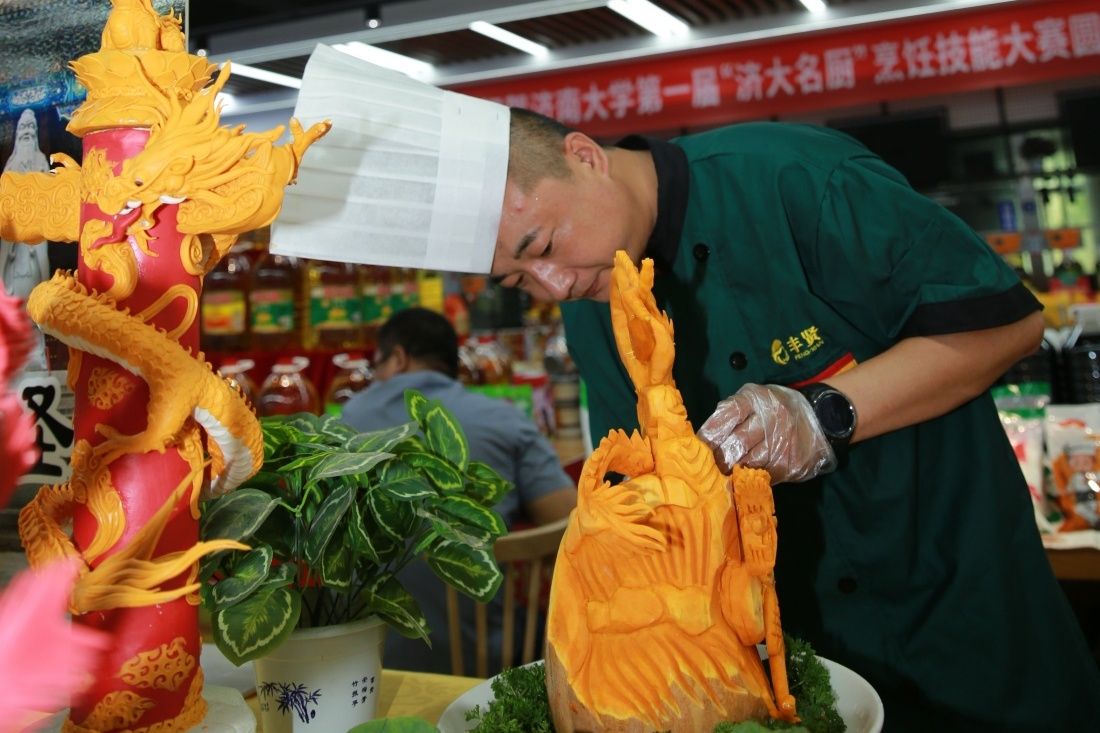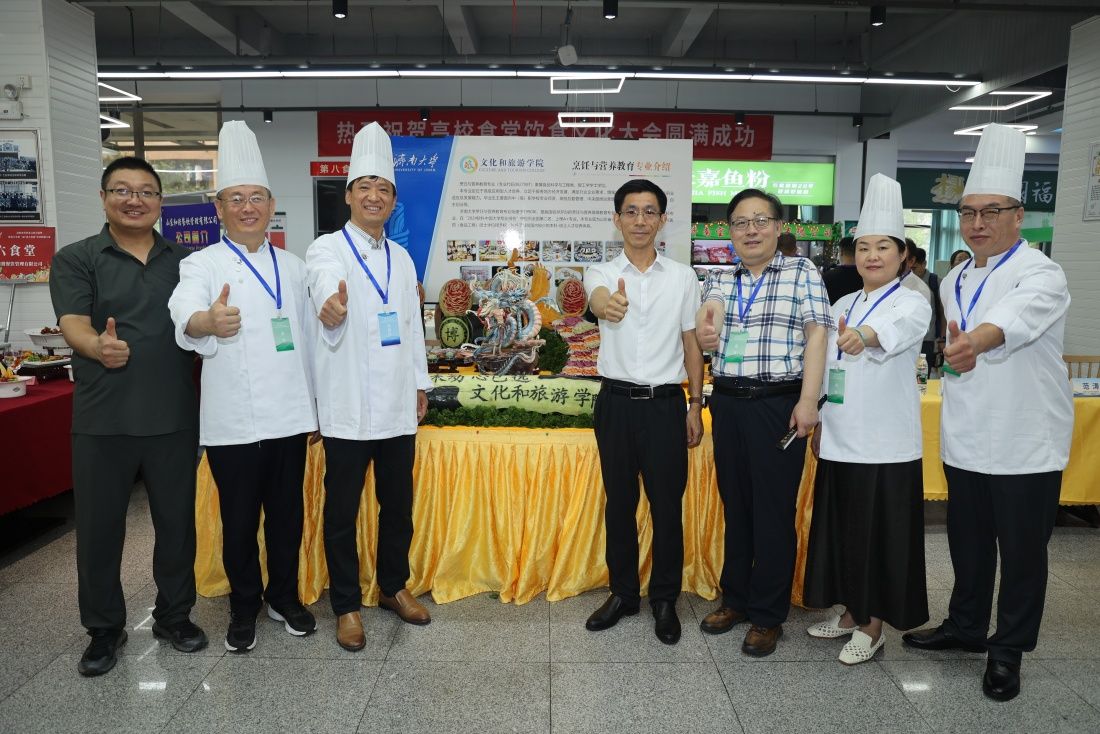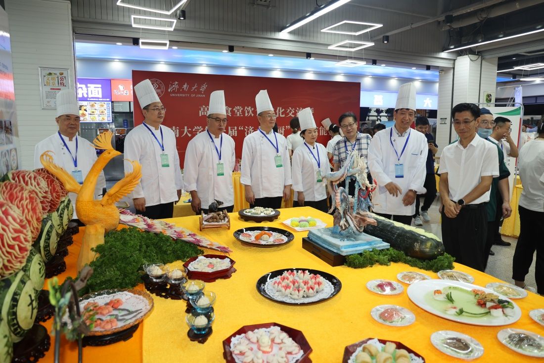 7月8日上午,高校食堂饮食文化交流暨yl34511线路中心第一届“济大名厨”烹饪技能大赛在第八食堂进行。山东省教育发展服务中心党委书记、主任魏光祥,学校党委常委、副校长李强,山东省学校后勤协会副会长兼秘书长刘学祥,中国烹饪大师山东省烹饪协会监事长、济南烹饪协会会长李建国,山东师范大学、山东农业大学、山东财经大学、山东建筑大学、山东交通学院、山东女子学院等yl34511线路中心部门负责人,学校党委宣传部、学生工作部(处)、党委保卫部 安全管理处、计划财务处、工会、团委、文化和旅游学院、yl34511线路中心处等相关负责人共同参加此次活动。
