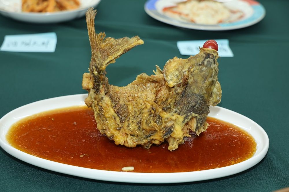 参赛的各食堂员工在比赛中展现拿手绝技,切磋厨艺技能。自选菜环节,大厨们各展奇招,色香味俱全的菜肴像一件件精美的艺术品,让人“烹”然心动。经过激烈角逐,第三食堂李吉润、第二食堂初荣宁等八人获得个人组特金奖,授予“济大名厨”称号;yl34511线路中心文化和旅游学院烹饪与营养教育专业学生的展台“孔雀迎宾”、第二食堂和第九食堂一二楼共同报送的展台“学齐鲁文化、品儒家美食”获得团体特金奖;北京千喜鹤科技服务有限公司等19家公司获得最佳组织奖。